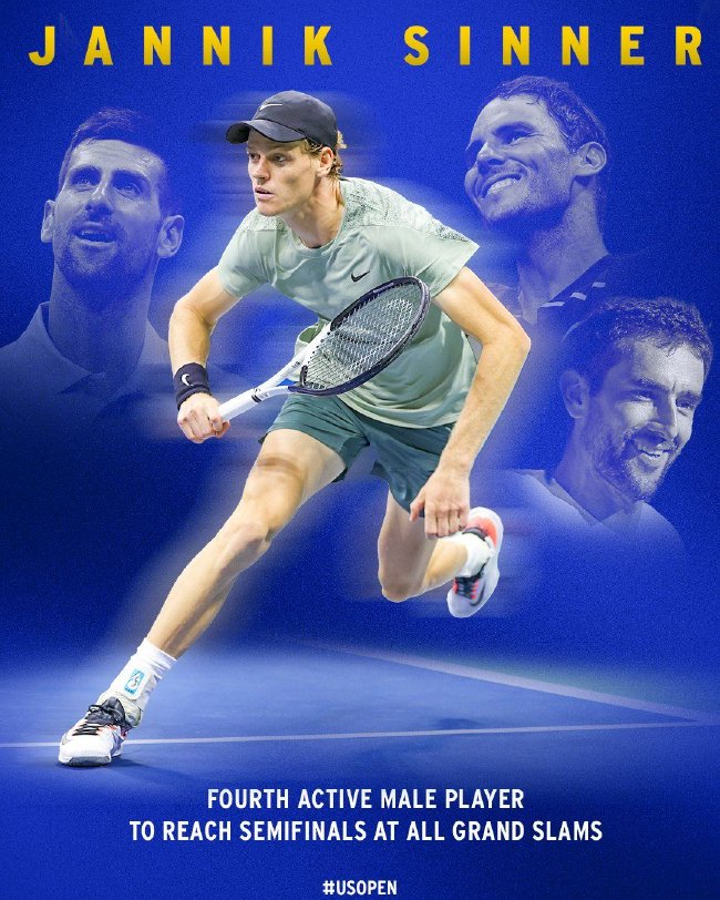 辛纳成为了公开赛年代以来,第3位闯入好意思网半决赛的意大利男选手(前两位折柳是1977年的巴拉祖蒂和2019年的贝雷蒂尼)。意大利东谈主也成为继纳达尔、德约科维奇、西里奇之后,现役第4位完成大满贯全4强树立的球员。