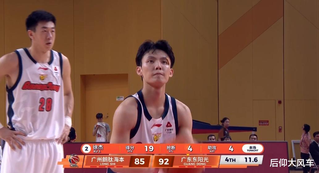 5分38秒,萨姆纳强突徐昕制造2罚,徐昕犯规数也来到3次,4分36秒,在霍勒迪飚进三分后,徐杰也迎着徐昕终于飚进广东队本节第一记三分。