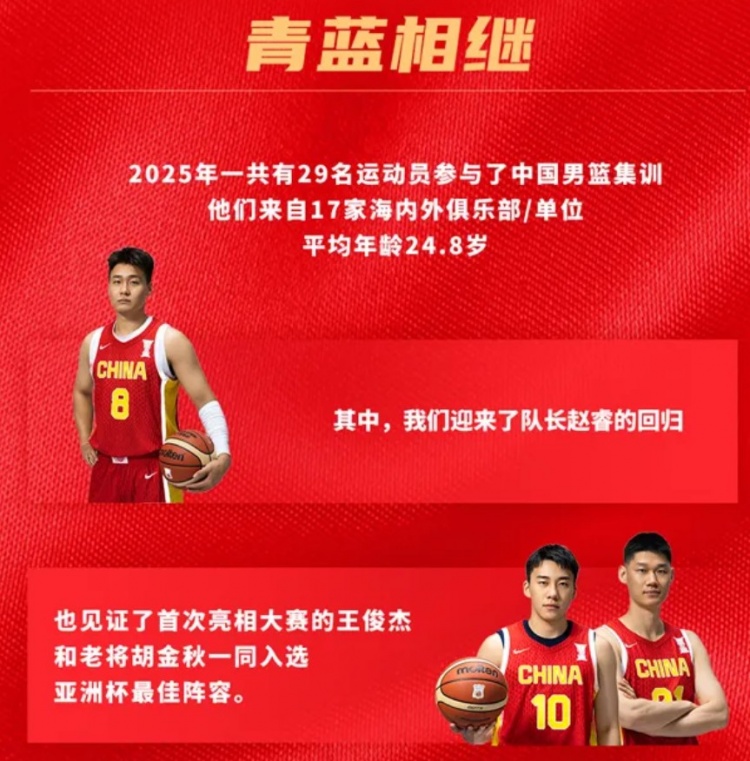 12月30日讯 中国篮球之队发布了2025年的年终清点。