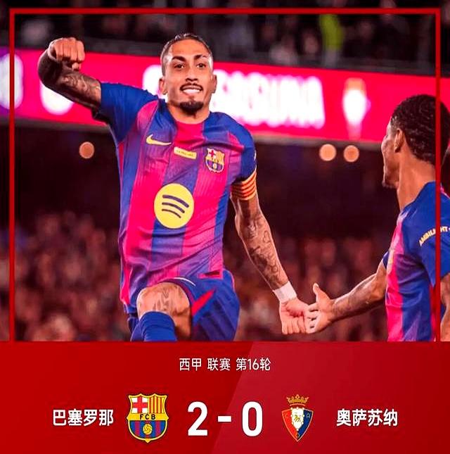第70分钟,佩德里精确的斜传助攻拉菲尼亚,后者在禁区弧顶处的一记抽射,破掉了奥萨苏纳的防地,梗阻了僵局。