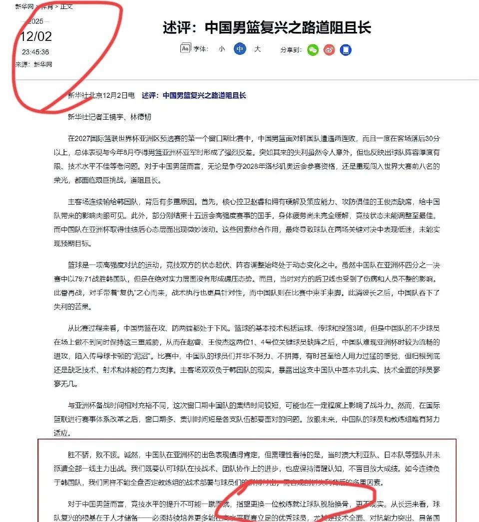 赛后,对于主解说郭士强的去留成了热议话题。有球迷质疑他的选东说念主,比如景象低迷的胡明轩入选,而景象好的徐杰却落第;质疑他的排兵列阵,比如用统统没蹙迫智力的高诗岩首发,用小矮个后卫去防对方尖刀 。但就在一派盘问声中,新华社罕主见发声了。他们合计,弗成因为两场失利就全盘含糊解说组的战术安排,况兼指出,“指望更换一位解说就能让球队夺胎换骨更不试验。”