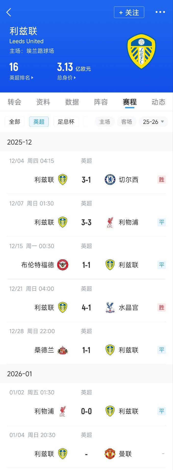 当作保级队,白玫瑰利兹联近6轮英超赢得2胜4平拿到10分,战绩很是亮眼。更进攻的是,他们的敌手含金量皆备:切尔西(胜)、利物浦(2平)、布伦特福德(平)、水晶宫(胜)、桑德兰(平)。